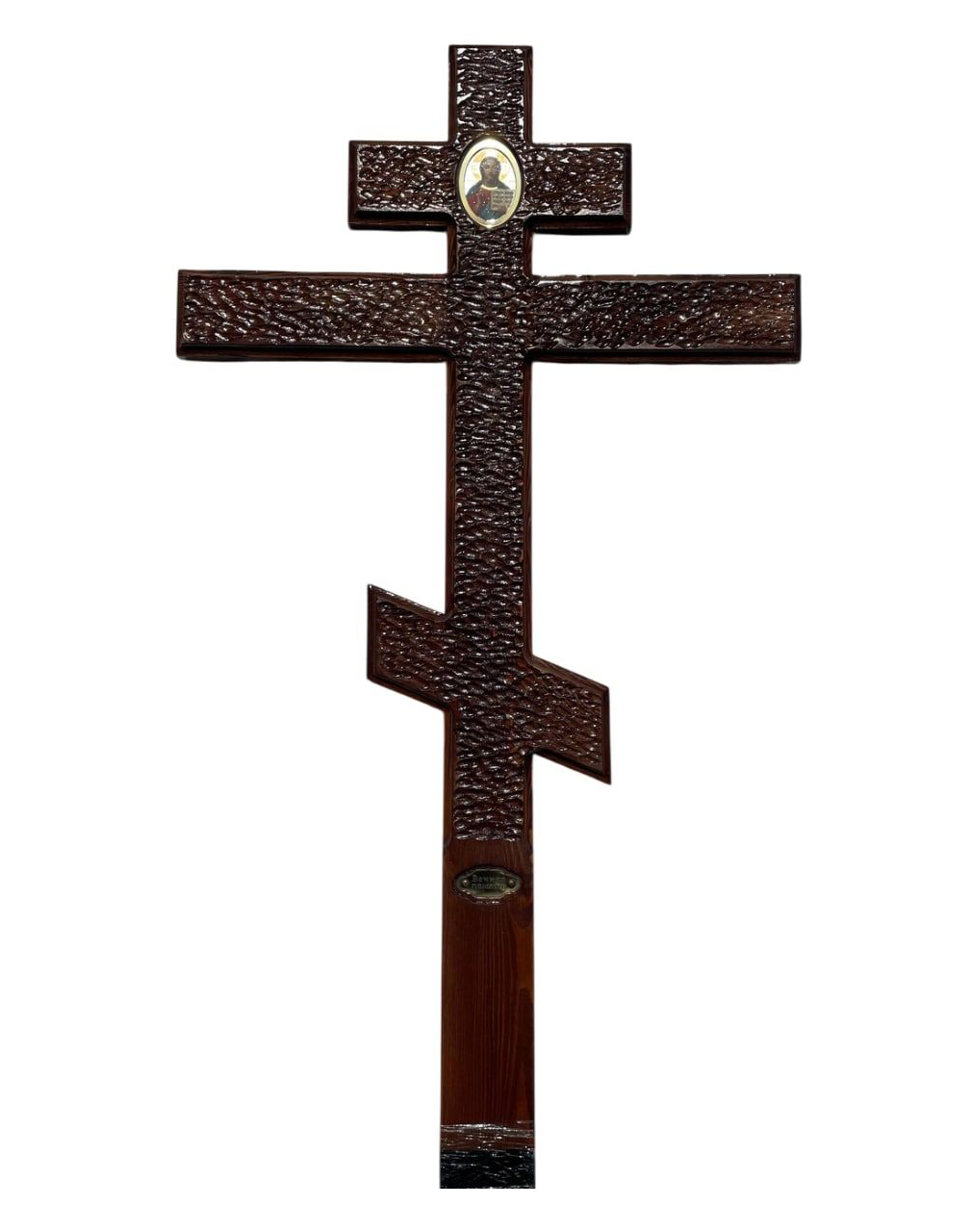 Большой, красивый и элегантный православный крест с иконой. Выполнен из качественной лиственницы с художественной росписью. Крест имеет прямую форму и является классическим символом на могиле. Крест легко устанавливать на могилу, а качественное исполнение позволяет оставить его на долгое время.