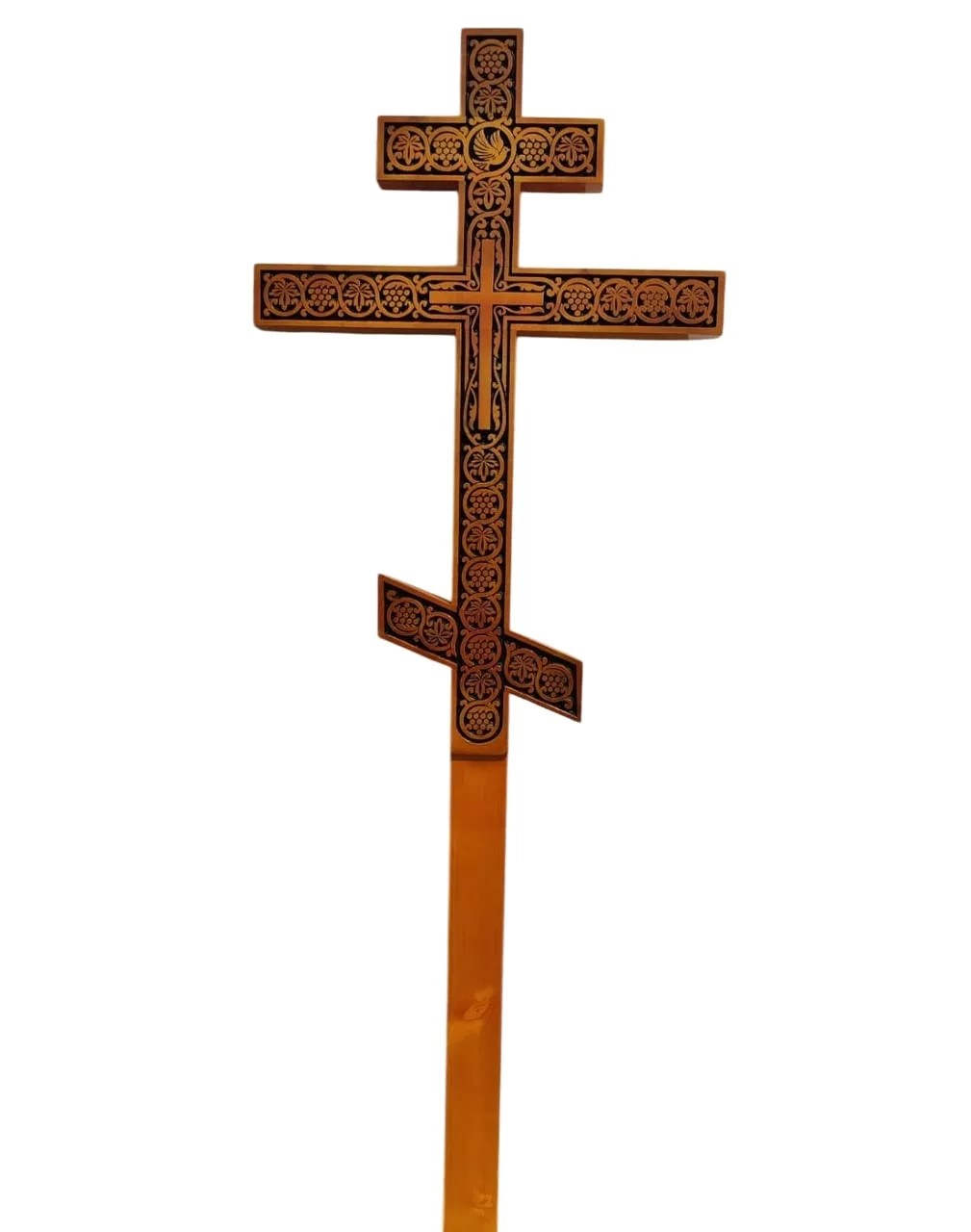 Большой православный крест из сосны. Гравировка в виде виноградной лозы и голубики.