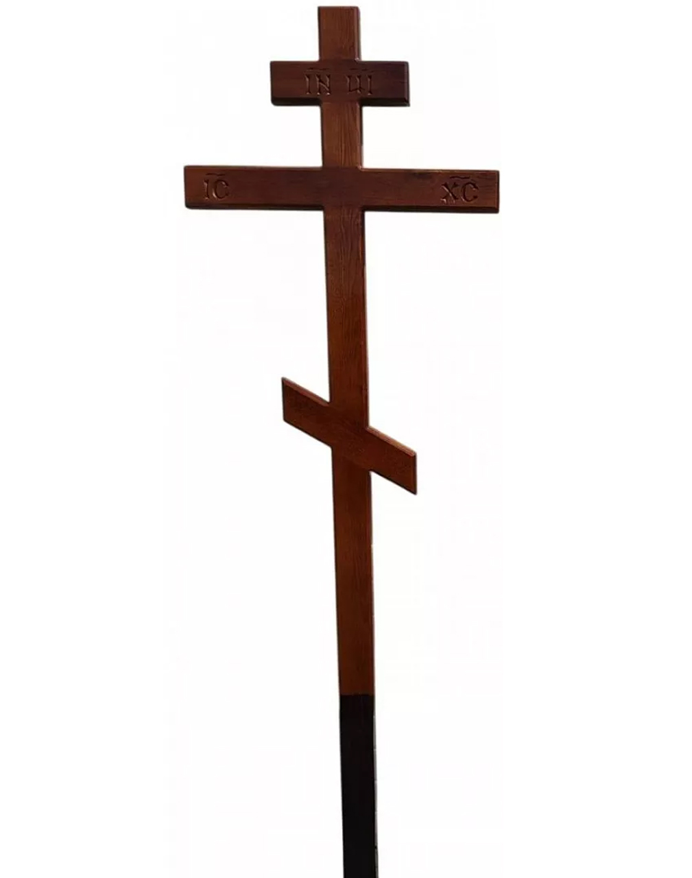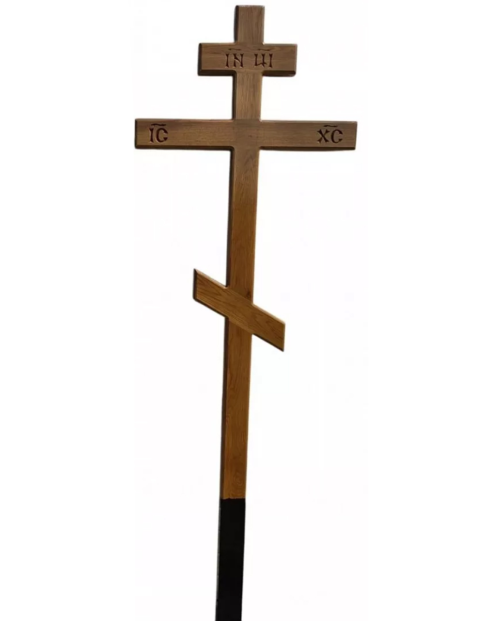 Большой дубовый православный крест. Крест имеет прямую форму и является классическим символом на могиле. Крест легко устанавливать на могилу, а качественное исполнение позволяет оставить его на долгое время.