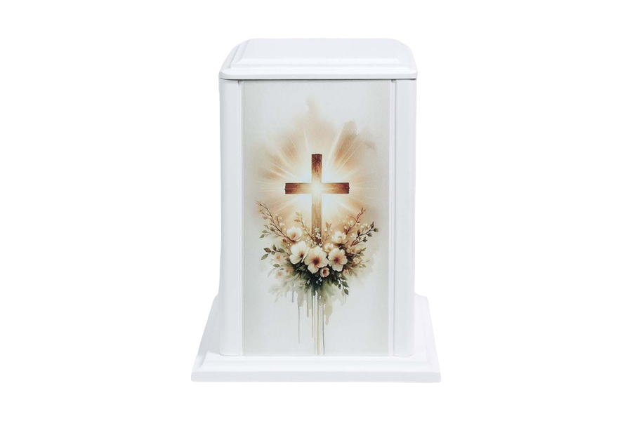 Урна для праха деревянная «Крест» белая можно заказать по телефону или при личном обращении в офис службы. Большой выбор ритуальных товаров в Интернет-магазине ООО «ГУП ЕС ГРС».