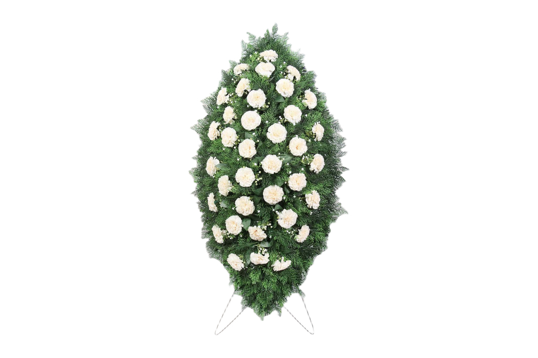 Траурный венок из искусственных цветов. Он символизирует уважение и память, идеально подходит для использования на похоронах и в траурных церемониях.