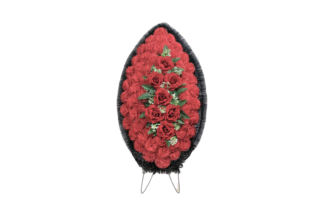 Траурный венок из искусственных цветов. Он символизирует уважение и память, идеально подходит для использования на похоронах и в траурных церемониях.