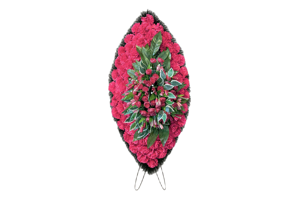 Траурный венок из искусственных цветов. Он символизирует уважение и память, идеально подходит для использования на похоронах и в траурных церемониях.